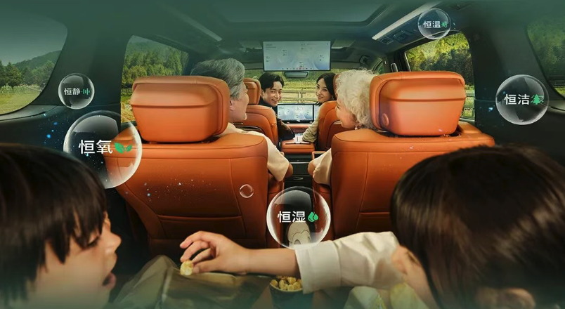 车内部分,健康与舒适是别克至境世家纯电版的核心亮点。其车内座椅皮革均获得了全球最严苛的OEKO-TEX婴儿级认证,并配备了松下nanoe™X纳米水离子发生技术与PM0.1级空调滤芯,共同构筑“健康舒适座舱”。尤为值得一提的是第二排,其搭载的多姿态零重力座椅支持自适应调节与一键放倒的“贵妃榻”模式,为乘客提供头等舱般的休憩体验。此外,前排与第二排座椅均标配了加热、通风及按摩功能。