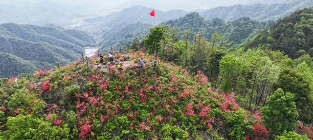 下管镇的芦山村,因海拔较高,常年云雾缭绕,仙气氤氲。每年四月上旬至下旬,野生映山红(杜鹃花)便沿着山脊绵延绽放,将多个山头染成一片绚烂的红霞,气势磅礴。