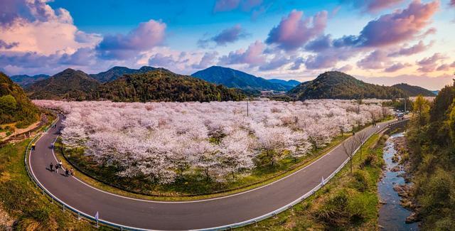 章镇镇张村的樱花谷,是长三角一处私藏的浪漫胜地。这里坐拥六百亩樱花林,沿着山谷蜿蜒分布,野趣十足,人少景美。