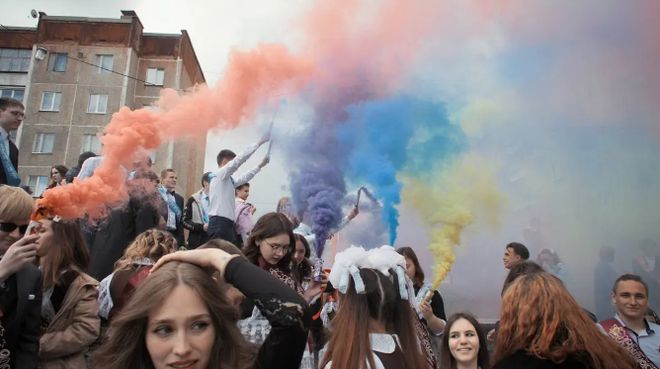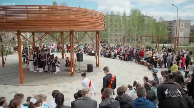 在离开俄罗斯前不久,帕夏还在筹划一场不可思议的拍摄,就是那场毕业典礼。我之前已经为结尾想过差不多二十种方案了,可最后他还是让我们大吃一惊——我们琢磨了那么久怎么给这部电影收尾,结果他一下子就把答案交到了我手里。