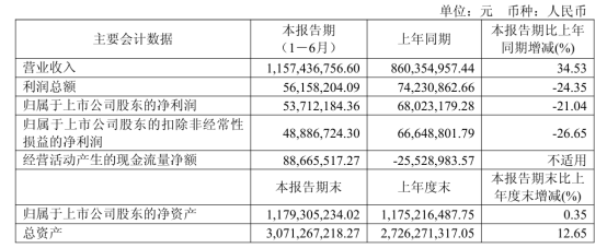 2025年上半年公司延续“增收不增利”:营收11.57亿元,同比增35%;归母净利润仅5371万元,再降21%。