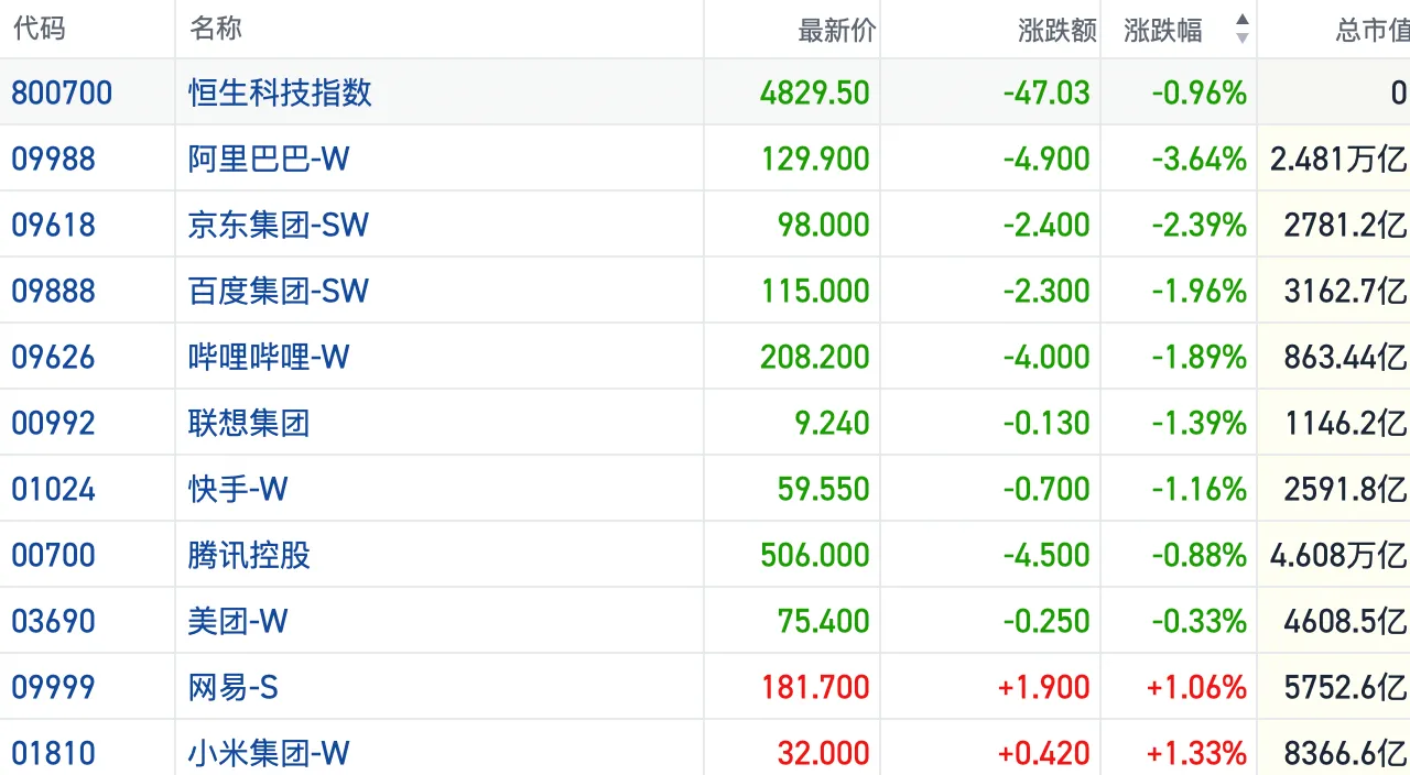 【多只大型科网股创阶段新低 恒指盘中跌破25000点】