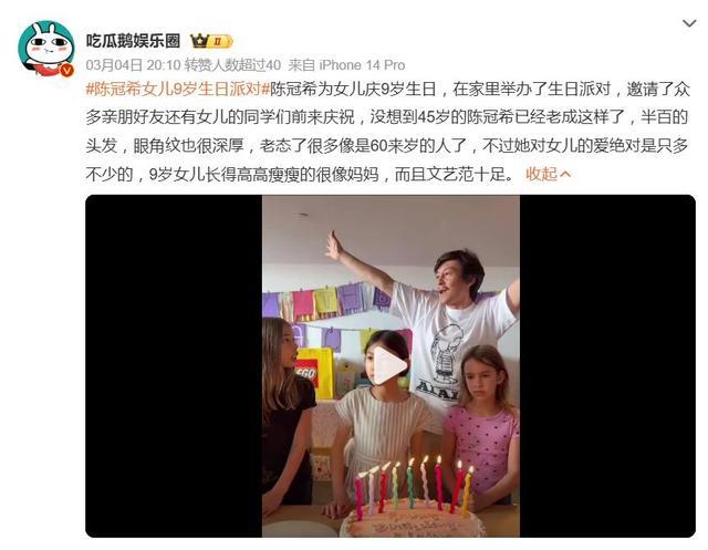 然而,焦点却意外地集中在了寿星老爸身上。镜头前的陈冠希素颜出镜,头发已半白,深刻的眼角纹和法令纹一览无余,面容略显沧桑,不修边幅的蓄须造型被不少网友调侃“宛如赵本山老师年轻的时候”。尤其是当他与保养得宜、依旧超模范儿十足的妻子秦舒培同框时,年龄感的反差被放大,被形容为“宛如两代人”。