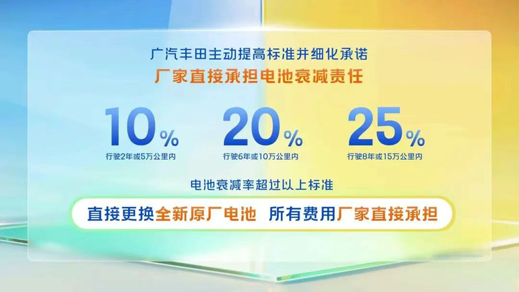 早先,广汽丰田就率先针对新能源汽车给出了行业首创的“厂家三担责”承诺。电池衰减、电车自燃、智能泊车辅助事故,新能源车主和潜在用户最为担忧的问题,广汽丰田都表示直接承担。