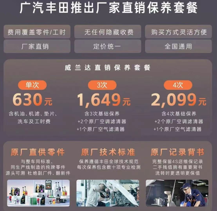 可以说,广汽丰田此次给出的厂家直销保养套餐,精准地击中了车主在维保过程中会面临的所有普遍问题。被维保“坑”过“宰”过的车主,了解后都能感受到广汽丰田厂家直销保养套餐的含金量。