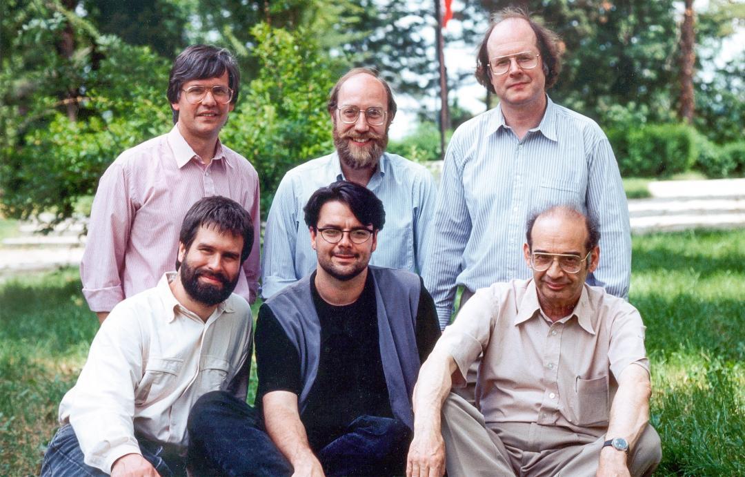 发明量子隐形传态的六位研究者在1994年合影。从左上角起顺时针方向依次为:Richard Jozsa、William Wootters、Charles Bennett、Asher Peres、Claude Crépeau和Gilles Brassard。